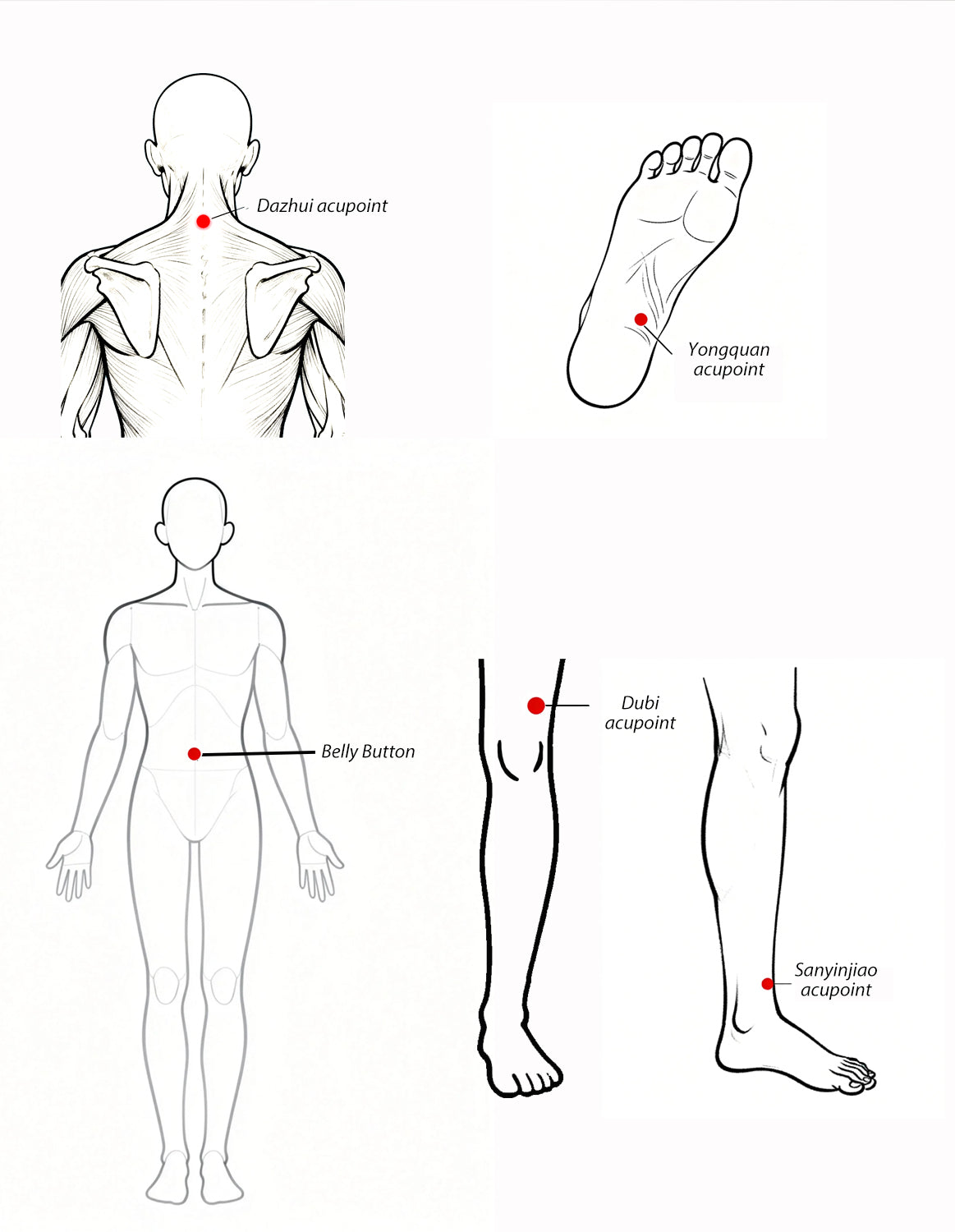 - For mild insomnia or difficulty falling asleep: Gently blow warm air at the Yongquan acupoint on the soles of your feet.